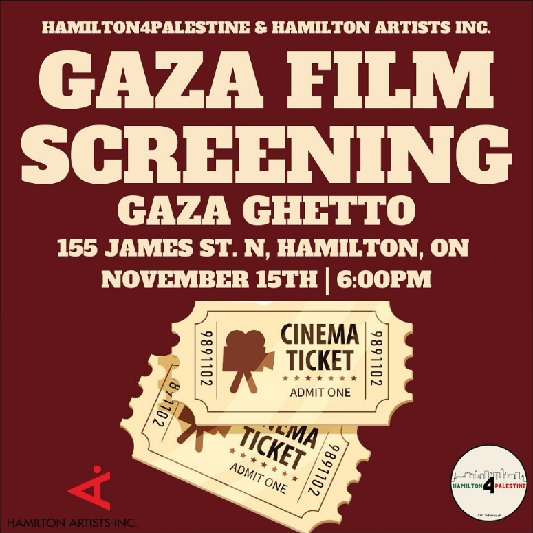 Hamilton Artists Inc in collaboration with Hamilton 4 Palestine are hosting a special fundraising screening of "Gaza Ghetto", the first documentary filmed in Gaza. This fundraiser is to support Hamilton 4 Palestine and their mission to bring awareness and advocacy towards the Human Rights abuses facing Palestine.