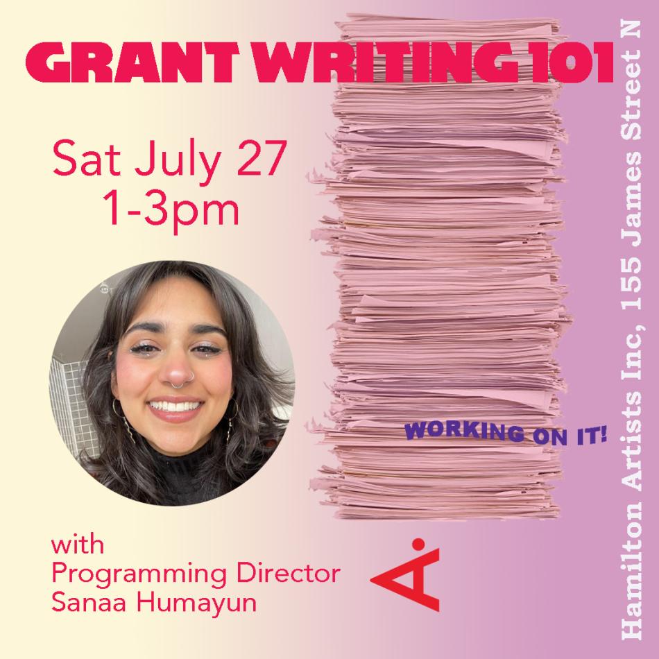 New workshop Alert! Introducing our next professional development workshop in our ‘workin on it!’ workshop series: Grant Writing 101 with our very own programming director Sanaa Humayun on Saturday July 27 from 1-3pm.
