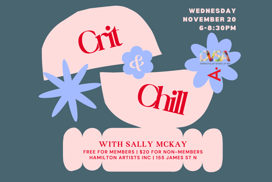 Join us for a chill participatory art critique led by artist, educator, and friend of the Inc, Sally McKay. An art critique is an open conversation. It is an opportunity to bring one completed artwork or artwork-in-progress in any medium for constructive feedback and discussion with other artists. Critiques create a welcoming space for us to ask questions, take risks, and further develop new artistic ideas! Sally will facilitate our conversation with kindness and imagination. This event is free for current members of Hamilton Artists Inc, or $20 for non-members. There will be a cash bar with alcoholic and non-alcoholic beverages. Co-presented in partnership with Dundas Valley School of Art. Registration is limited, please pre-register through the link in our bio.